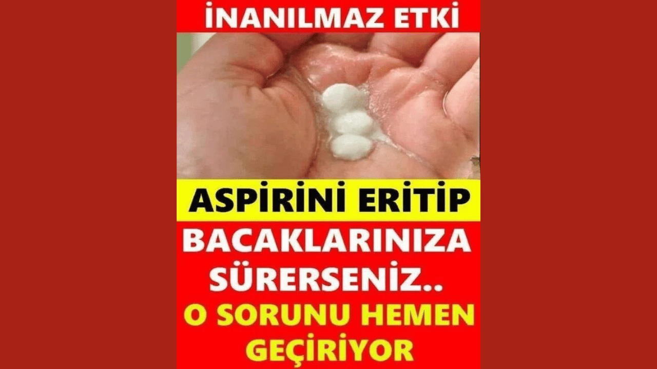 Aspirini Eritip Bacaklarınıza Sürerseniz O Sorunu Hemen Geçiriyor.. Tıp dünyasının mucizesi olarak bilinen aspirin günlük hayatta öyle işimize yarıy0r ki adeta hayatımızı kolaylaştırıyor. Yazıyı okuyun etkilerine şaşacaksınız. O derece etkili ve faydalı bir şifa kaynağı aspirin. Bakın aspirin ne kadar da çok işimize yarıyormuş nelere faydalıymış da biz bilmiyormuşuz.