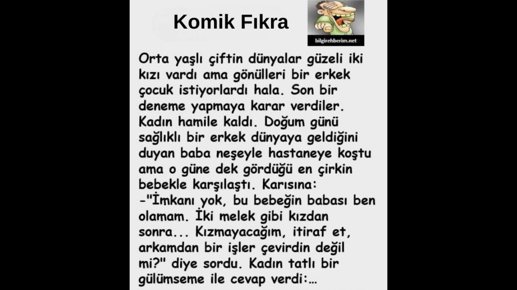 -“İmkanı yok, bu bebeğin babası ben olamam. İki melek gibi kızdan sonra… Kızmayacağım, itiraf et, arkamdan bir işler çevirdin değil mi?” diye sordu. Kadın tatlı bir gülümseme ile yanıt verdi: Devamı diğer sayfada..