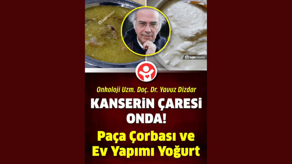 Kanserin çaresi ev yapımı yoğurt ve kelle paça çorbası hakkında. Çapa Tıp Fakültesi’nden onkoloji/farmakoloji uzmanı Yrd. Doç. Dr. Yavuz Dizdar, kanserin sebebinin DNA veya hücrelerde değil, hepsinin içinde yaşadığı bağ dokusunda aranması gerektiğini söylüyor. Dizdar, hastalara en güçlü toksin temizleyicisi olarak ev yoğurdunu, en güçlü doku yenileyici olarak da paça çorbasını tavsiye ediyor. Ev yapımı yoğurt ve paça çorbası kanseri bakın nasıl önlüyormuş? Hepsi yazımızın detayında.. Lütfen okumaya devam ediniz.