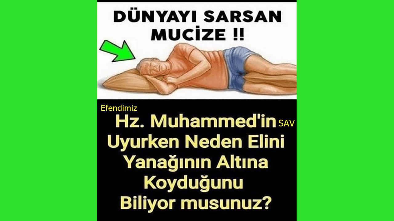 Hz. Muhammed Sallallahu Aleyhi Vesellem Efendimizin Uyurken Niçin Elini Yanağının Altına Koyduğunu Biliyor musun? Bununla birlikte bilim insanlarının bir çok kişinin görüntüsünü incelemeye aldığı ve ünlü bir bilimsel dergide gösterilen araştırmada insan vücuda bakın ne büyük olumlu etkileri varmış. Ayrıntılar diğer sayfamızda lütfen okumaya devam ediniz.